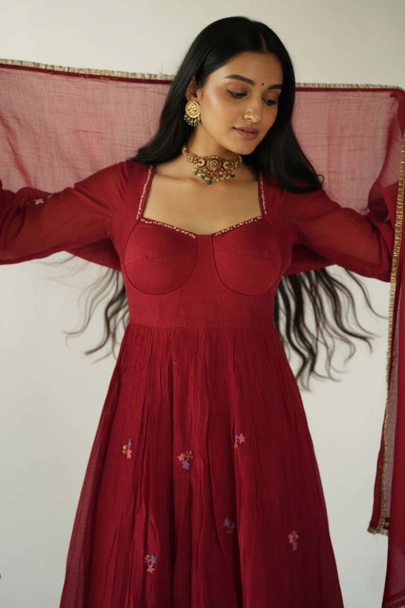 Maroon Petal Dress